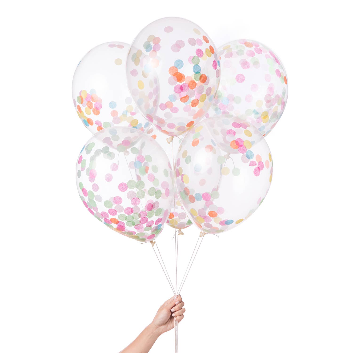 Each box contains 6 clear 11" balloons pre-filled with multicolor confetti