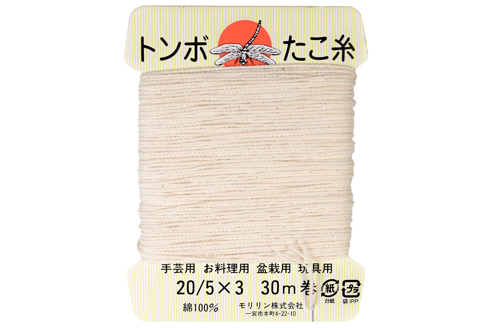 Made in Japan from 100% cotton, this simple spool of twine will be there when you need it. It's strong enough for most household and studio tasks. Each spool has 30 meters (98 feet) of triple-stranded, unbleached cotton twine.