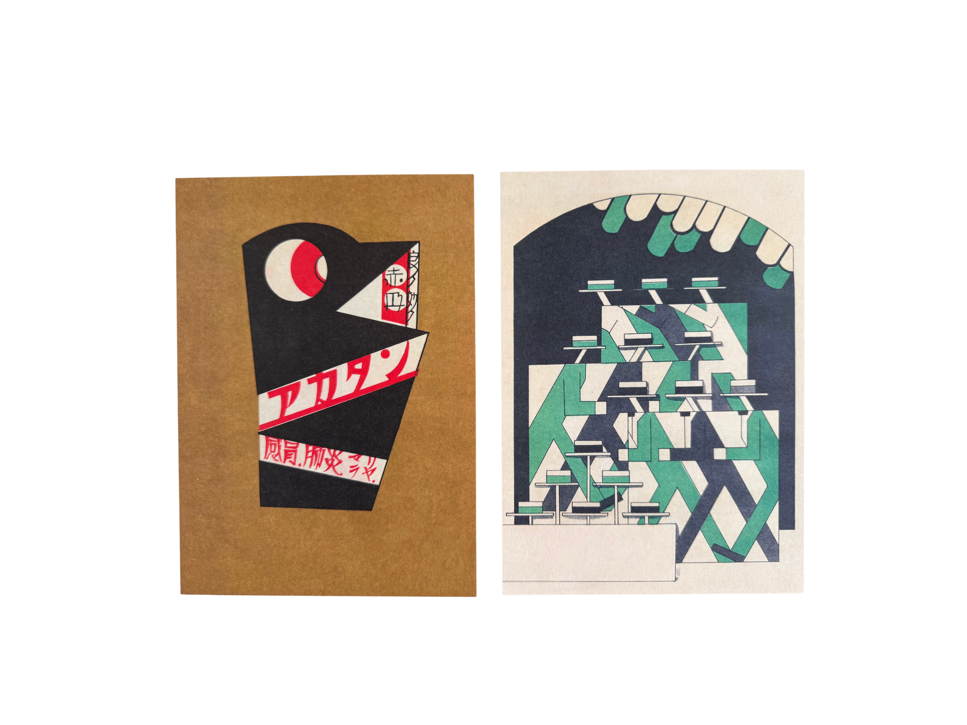 This set of 40 postcards features 20 favorite designs from a spectacular sourcebook of Deco-era Japanese design. Launched in the late 1920s, The Complete Commercial Artist (Gendai shogyo bijutsu zenshu) showcased work by Japan’s early design visionaries in 24 volumes discussing posters, window displays, lighted signs and more. The colorful selections featured in this stationery set include a dashing dalmatian and handsome hat rack, as well as designs for radios and pens, adorable cat-shaped arches, geometric character designs and modernist illustrations with jazz performers and bob-haired women prepping for a night on the town. With artwork by Sugiura Hisui, Murayama Tomoyoshi, Hamada Masuji and other leading graphic artists of the era, these retro postcards deliver a pop of mailable moderne in a keepsake box.