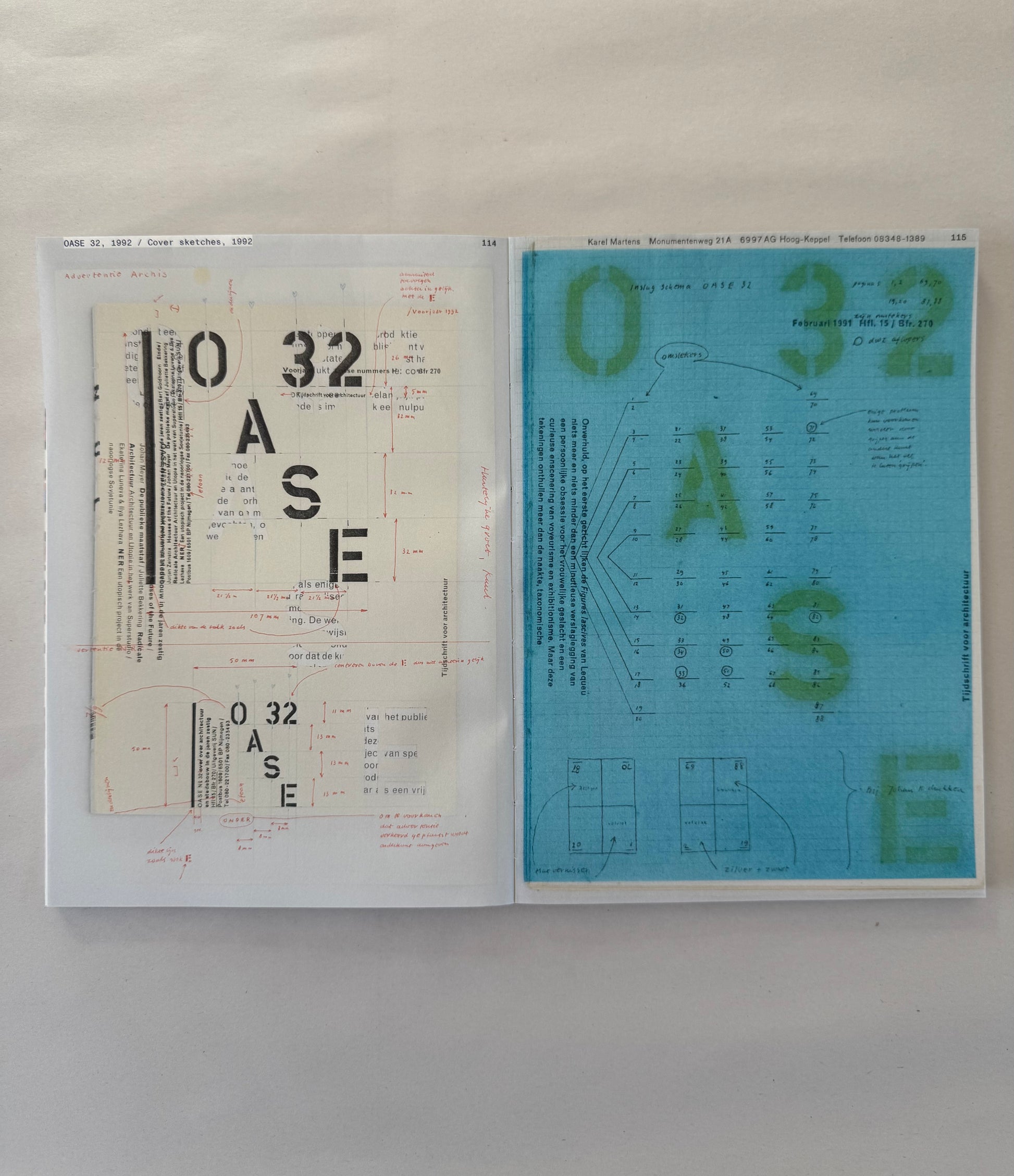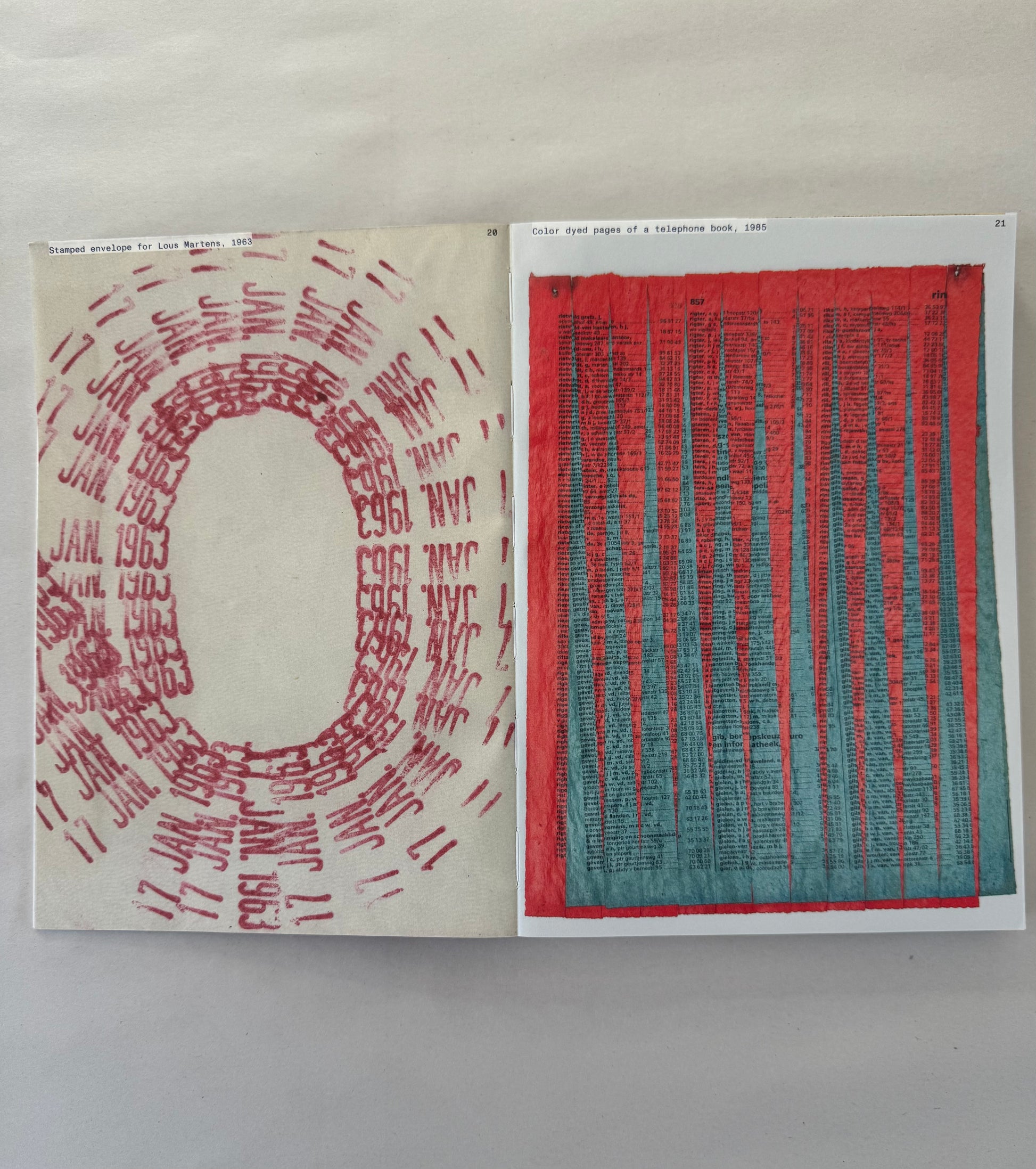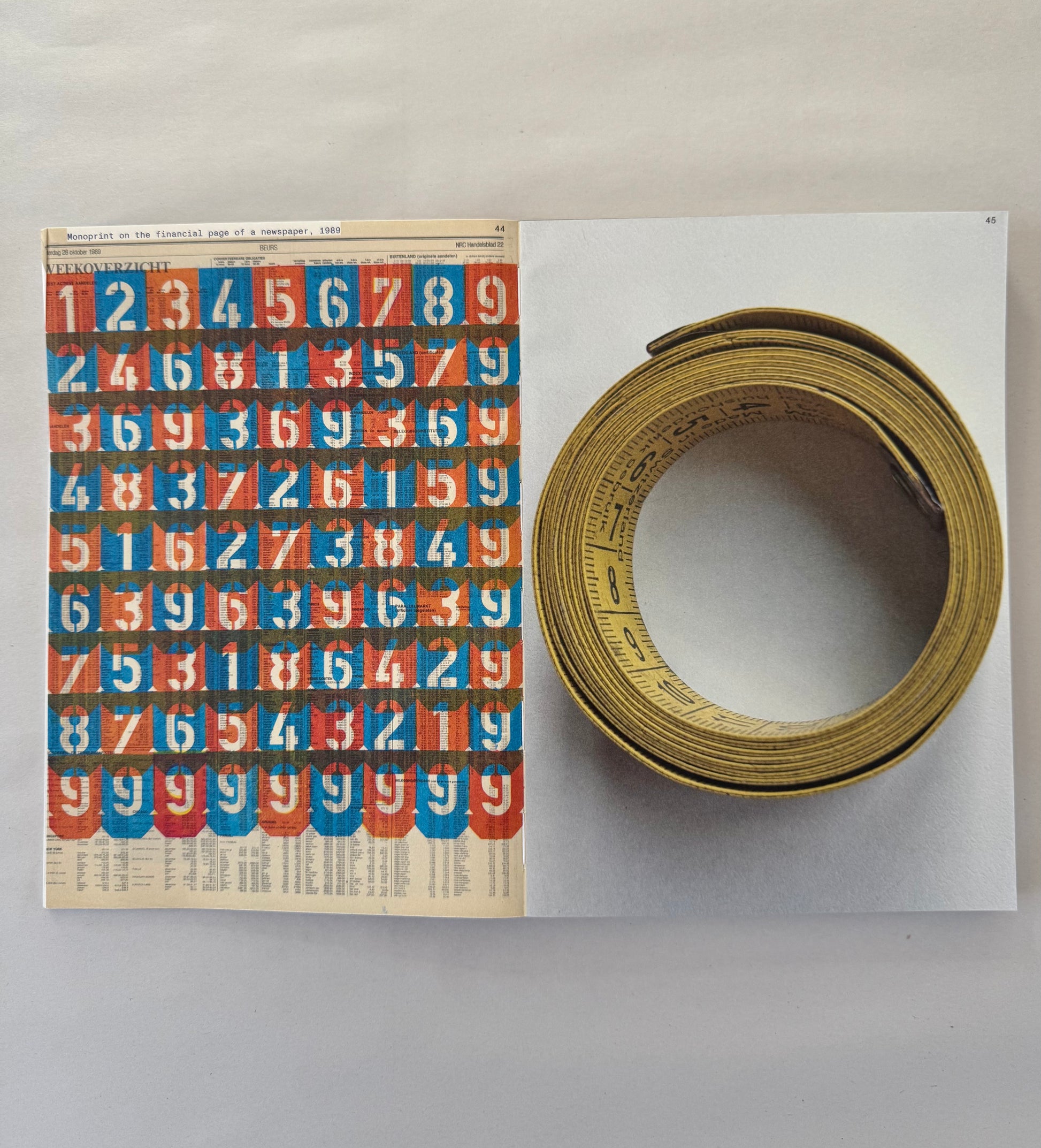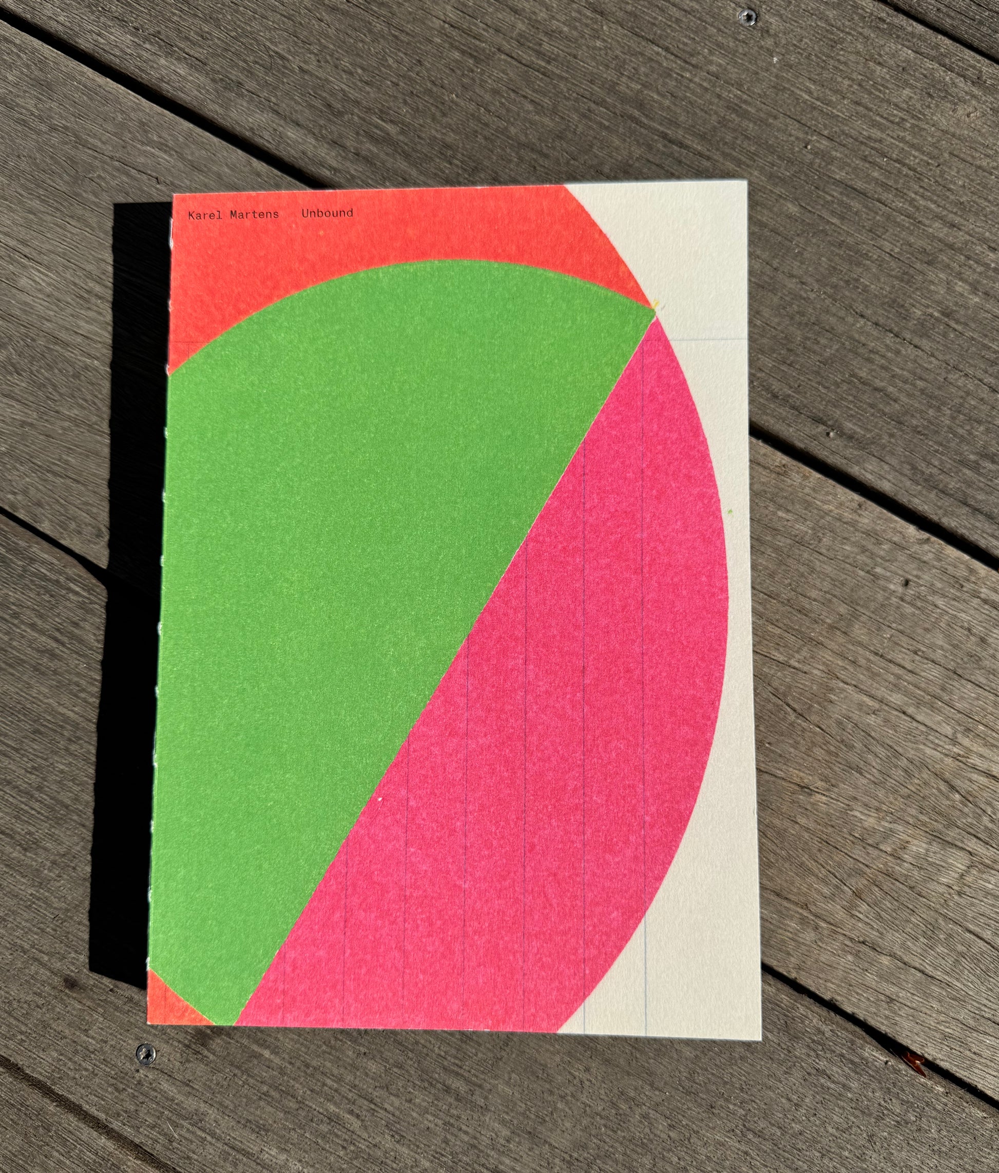 ‘Unbound’ accompanies Karel Martens’ first solo exhibition at the Stedelijk Museum Amsterdam, bringing together a wide-ranging body of work Martens made and collected over the entire span of his decades long career. Containing works from the show, collaged, overprinted, and juxtaposed with elements found around his studio, the book balances between being an artist book and a catalogue. This publication, thoughtfully designed by Jordi de Vetten and Susu Lee in close collaboration with Martens himself, functions as a handbook to his work. But it’s an unconventional one: unstructured, non-hierarchical, playful, personal, and associative.