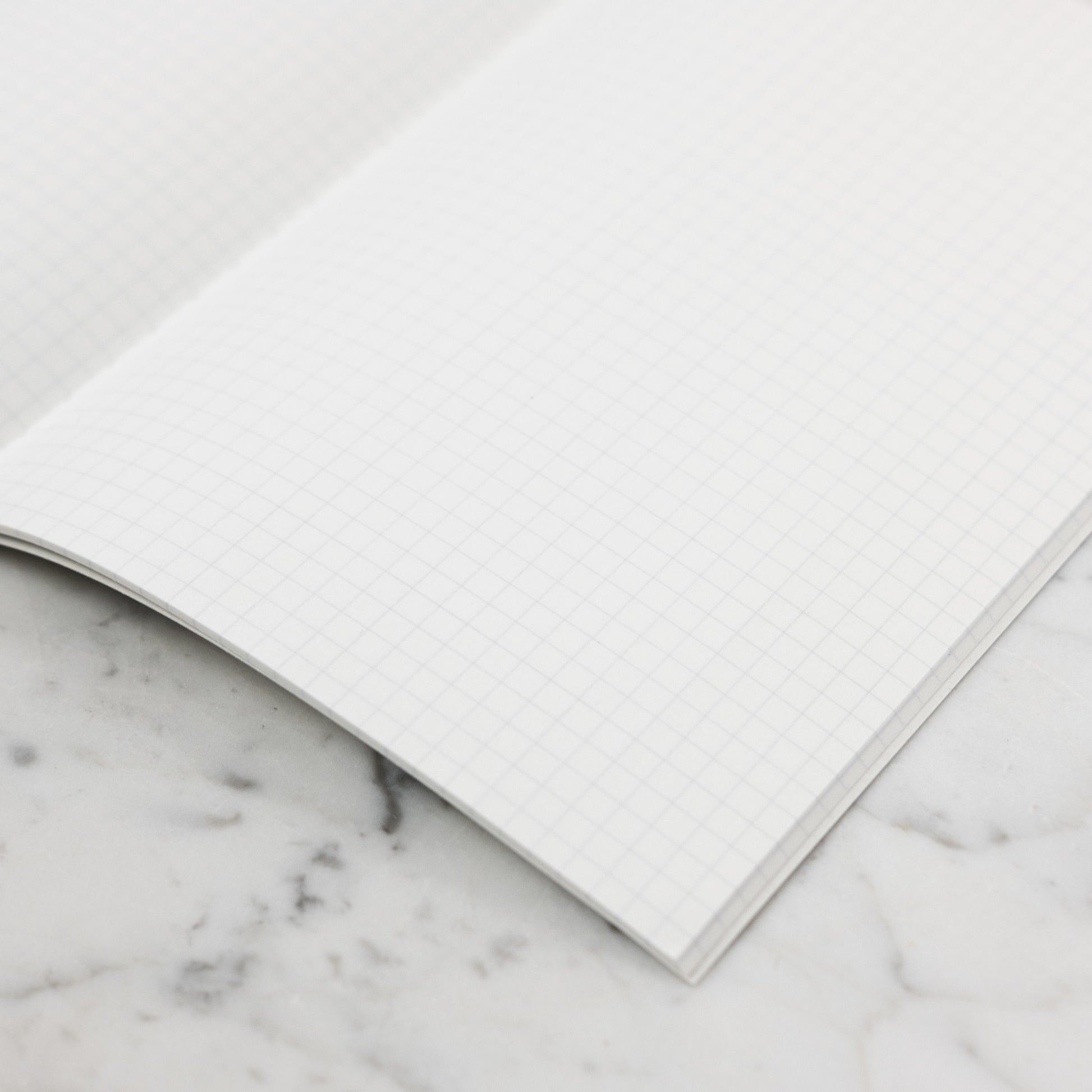 Tsubame's notebooks are thread-bound and use acid-free "fools paper" that's lightly printed with a 5mm grid. Fool's Paper is known for its excellent ink handling — it resists feathering, bleed-through, and show-through, making it ideal for fountain pen users, clean writing and sharp ink lines.
