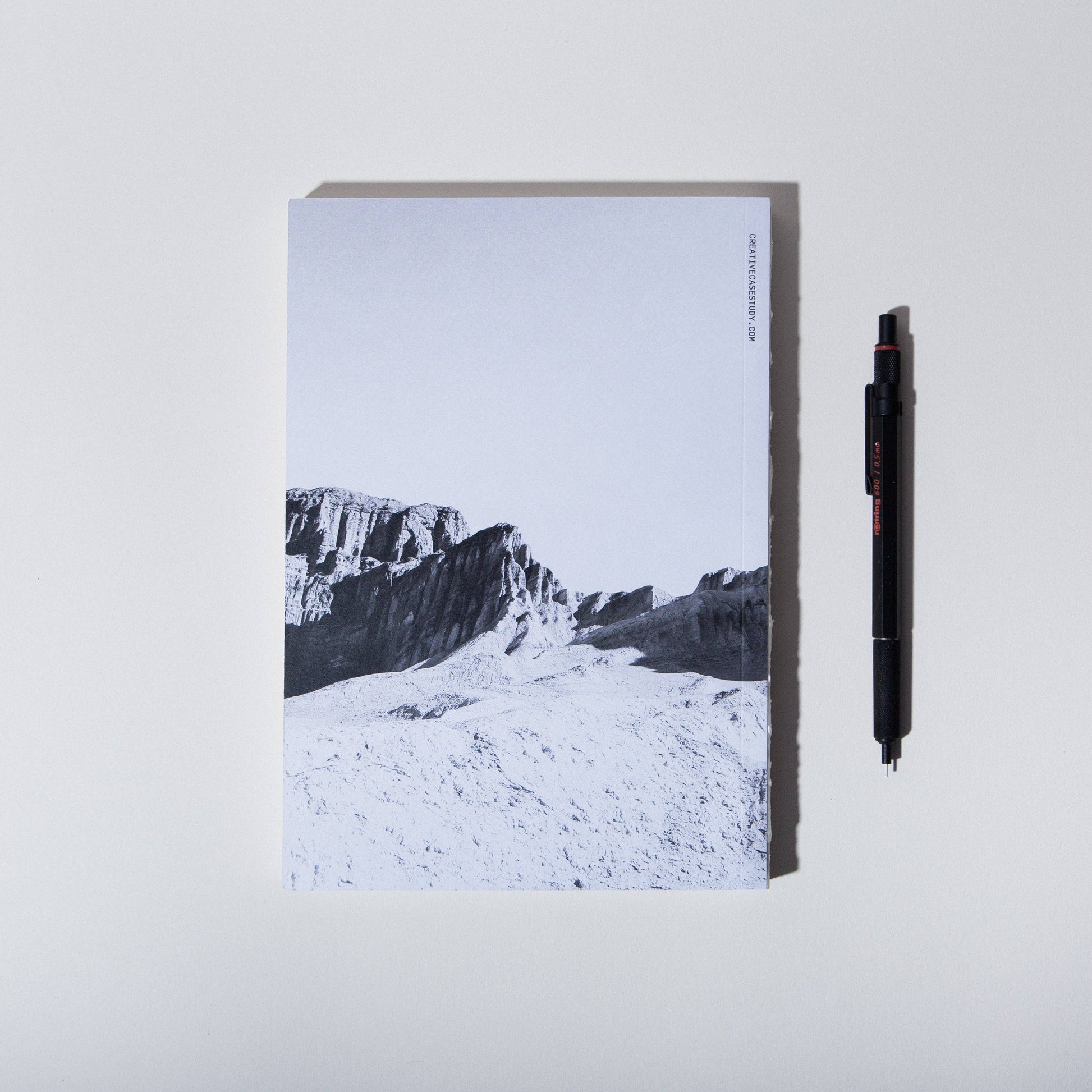 The Desert notebook marries art with functionality. It's meant to be used every day to sketch, journal, or brainstorm your next best idea. It has a quality organic texture and lays flat without resistance, providing a level and comfortable surface for writing and sketching. Packaged in a recyclable plastic sleeve.