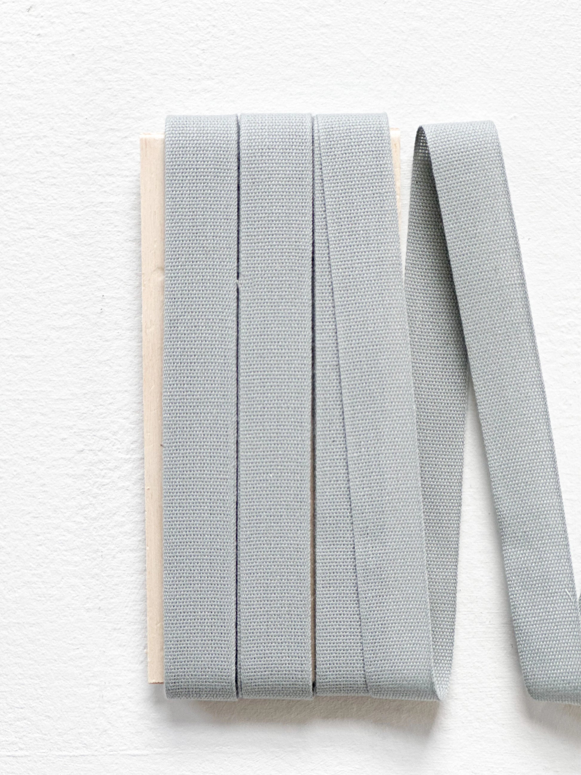 Tight weave ribbon in ice color, 100% cotton fiber.